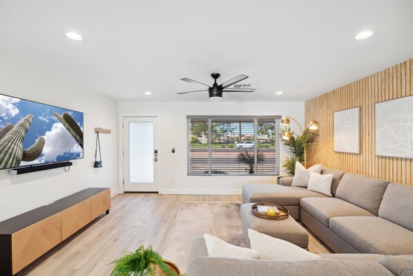 Living Room: - Super comfortable sectional - 65" Smart 4K TV - Games