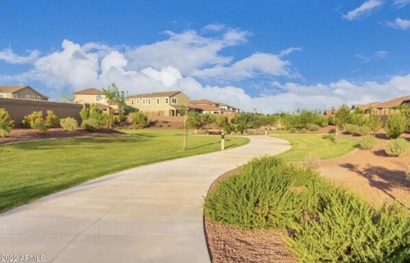 Escape to a brand new home in a gated community with private trails and breathtaking views of the Arizona sunset. With State Farm Stadium just 5 minutes away, you can easily catch a game or concert, then head back to your tranquil retreat.