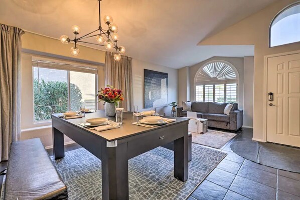 About this space Have fun with the whole family at this gorgeous 2000 Sq ft, 4 Bdrm, 2 bath home centrally located 15 minutes from airport in north Phoenix with easy access to all the valley hotspots. The space Three SmartTVs, cable, superfast wifi, Beautiful putting green, large bedrooms, and in a top-notch neighborhood 3 smart tv’s, cable included, free WiFi (business-friendly w/highest speed available) Sleeps 12-14 comfortably: 2 king beds, 2 queen beds, 1sleeper sofa, 1 queen air mattress, 1 couch Just minutes to the 101 and 51 hwys, 1/4 mile to Paradise Valley Golf Course, within 1 mile of grocery stores/restaurants Great for business professionals, families, or travelers! The space Features 4 bedrooms, 2 bathrooms, 2 car garage, putting green, and 3 TVs. 2 King beds, 2 Queen beds, 2 Air Mattresses, 1 Sleeper Sofa No garage access. Parking in the driveway only Guest access Guests have access to the entire home during their stay Other things to note The dining table doubles as a pool table and ping pong table