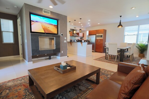 Location: Old Town Scottsdale – 8 min Tempe Marketplace – 3 min Multiple Spring Training stadiums – within 15 min Sky Harbor Airport – 7 min Easy access to the 101 and 202 loops (2 min) Living Areas: Relax in the open-concept living room featuring a large Smart TV and comfortable seating. The dining table seats six, making meals and gatherings effortless. Modern décor and natural light create a welcoming space for families and friends.