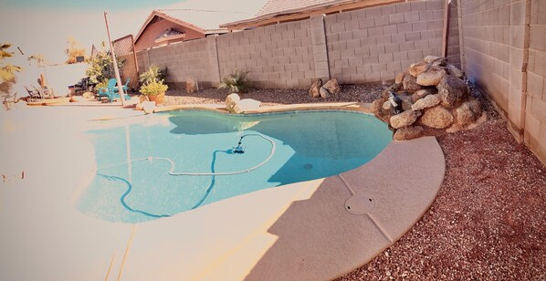 Title: Walk to Goodyear ballpark! Fun in the sun! Reviews, Deals & Photos 2026 - Expedia.co.uk [See all properties](http://www.expedia.co.uk/Hotel-Search?regionId=&adults=2&children=&sort=RECOMMENDED&useRewards=false&semdtl=&userIntent=&vip=false) Entire home # Walk to Goodyear ballpark! Fun in the sun! Holiday home in Goodyear with private pool and kitchen ## Photo gallery for Walk to Goodyear ballpark! Fun in the sun! ![Pool - Walk to Goodyear ballpark! Fun in the sun! (Goodyear)](https://images.trvl-media.com/lodging/102000000/101250000/101241400/101241321/1f7db53a.jpg?impolicy=resizecrop&rw=598&ra=fit) ![Exterior detail - Walk to Goodyear ballpark! Fun in the sun! (Goodyear)](https://images.trvl-media.com/lodging/102000000/101250000/101241400/101241321/328e0837.jpg?impolicy=resizecrop&rw=297&ra=fit) ![Property grounds - Walk to Goodyear ballpark! Fun in the sun! (Goodyear)](https://images.trvl-media.com/lodging/102000000/101250000/101241400/101241321/a1580497.jpg?impolicy=resizecrop&rw=297&ra=fit) ![Children’s area - Walk to Goodyear ballpark! Fun in the sun! (Goodyear)](https://images.trvl-media.com/lodging/102000000/101250000/101241400/101241321/w1242h689x0y2-fb2bb37a.jpg?impolicy=resizecrop&rw=297&ra=fit) ![Smart TV, video games, DVD player, books - Walk to Goodyear ballpark! Fun in the sun! (Goodyear)](https://images.trvl-media.com/lodging/102000000/101250000/101241400/101241321/6e42263c.jpg?impolicy=resizecrop&rw=297&ra=fit) - Overview - Location - Amenities - Policies You can look forward to a firepit, a garden and laundry facilities at Walk to Goodyear ballpark! Fun in the sun!. Stay connected with free in-room WiFi. ## Reviews 9.4 Exceptional ### Entire home 3 bedrooms2 bathroomsSleeps 61264 sq ft ## Popular amenities - Pool - Kitchen - Washing machine - Dryer - Free Wi-Fi - Air-conditioning ## Add dates for prices Check-in Check-out Travellers ## About this property ### Entire place You'll have the entire home to yourself and will only share it with other guests in your party. ### Walk to Goodyear ballpark! Fun in the sun! Our cozy home is just 1 mile to Goodyear ballpark for spring training with Guardians or the Reds . Phoenix International Raceway NASCAR is Minutes away along with 7golf courses , shopping, dining and entertainment are only minutes away! Not a long drive to West Gate shopping mall and entertainment district, Cardinal Stadium, Coyotes Hockey, hiking, golfing, tanger outlets and top golf. Our private back yard has a gas fire pit . Sit outside at the Outdoor dinning table.Outdoor pool has water feature, and solar blanket during the winter months . It’s only heated by sunshine! The home has two tv’s , one in master and one in living room with Roku . We have a stereo you can play your favorite cd or just listen to radio inside or outside with surround sound. There is a Nintendo 64 for gaming fun too. Cook some good food with our outdoor BBQ Grill. Depending on time of year, we have a couple garden beds that may have a little something growing , for you to enjoy. Stainless kitchen appliances include refrigerator, microwave , flat top stove with convection , air fry and bake oven. We have a dishwasher so it makes cleaning easier . You don’t have to buy water we have reverse osmosis with separate faucet ! If your a cook , there are lots of gadgets and many spices to make things easier. There are 3 queen beds but we do have a blow up queen mattress you can put in living room if needed. \* We do have cameras on property, one in front, garage side yard, and in backyard. Before check in front camera will be on . During your stay we will turn only side garage camera on. ## Property amenities ### Beach - Beach loungers - Beach towels ### Pool/Spa - Private pool ### Internet - Available in the house: Free WiFi ### Parking and transport - Onsite parking options include a garage ### Kitchen - Blender - Coffee/tea maker - Cookware, dishware, and utensils - Dishwasher - Hob - Ice maker - Microwave - Oven - Paper towels - Refrigerator - Spices - Toaster ### Dining - Dining table ### Bedrooms - 3 bedrooms - Bedsheets provided ### Bathroom - 2 bathrooms - Bathtub or shower - Hair dryer - Shampoo - Soap - Toilet paper - Towels provided ### Living spaces - Dining table - Living room ### Entertainment - Books - DVD player - Games - Music library - Smart TV - Stereo - Video games - Video library ### Outdoor areas - Barbecue grill - Firepit - Garden - Outdoor furniture - Patio ### Laundry - Laundry facilities - Washing machine ### Comfort - Air conditioning - Heating ### Pets - No pets allowed ### Suitability/Accessibility - Smoke-free property ### Services and conveniences - Iron/ironing board ### Location highlights - Near a zoo ### Things to do - Basketball nearby - Golfing nearby - Swimming nearby ### Safety features - Carbon monoxide detector (host has indicated there is a carbon monoxide detector on the property) - Smoke detector (host has indicated there is a smoke detector on the property) - First aid kit - Fire extinguisher - Deadbolt lock ### General - Garden - Unit size: 1,264 square feet ## Similar properties ![Outdoor pool](https://images.trvl-media.com/lodging/110000000/109660000/109657500/109657472/2948ca13.jpg?impolicy=fcrop&w=469&h=201&p=1&q=medium) ### NEW 2024 HOME 3BR/2BA, 2 CAR GARAGE, LEVEL 2 EV CHARGER, 86" TV, AND KING BED Goodyear - Pool - Kitchen - Washing machine - Dryer 10 Exceptional 3 reviews [](https://www.expedia.co.uk/Hotel-Search?startDate=2026-01-08&endDate=2026-01-09&selected=109657472&PinnedHotelID=109657472&HadPinnedHotel=true®ionId=-1&adults=2) ![TV, fireplace, DVD player, video library](https://images.trvl-media.com/lodging/115000000/114130000/114123600/114123567/84a6e038.jpg?impolicy=fcrop&w=469&h=201&p=1&q=medium) ### Inviting home with patio, enclosed yard, fireplace, office, streaming, W/D, AC Estrella Vista - Kitchen - Washing machine - Dryer - Air-conditioning 10 Exceptional 1 review [](https://www.expedia.co.uk/Hotel-Search?star