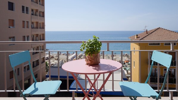 The accommodation is bright, with comfortable spaces, equipped with a living room-kitchen where there is a French style sofa bed, a comfortable terrace overlooking the sea and the main street, a double bedroom that has access to the balcony, a bedroom with a crib and a bathroom with shower. Suitable for those who want to spend a vacation with a unique ocean view in a lively neighborhood.
