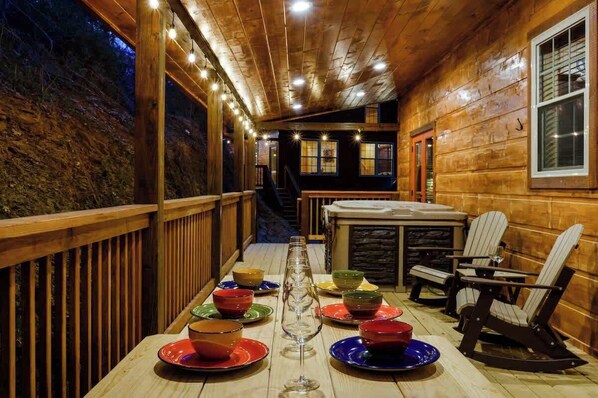 Nice big cabin with plenty of room for privacy. It was great having en suite bathrooms for each bedroom. Being really close to the parkway was important to us because we were in and out a lot during our (too short) stay. Would definitely stay again!