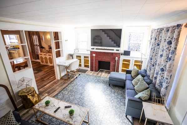 Recently stayed here and home was OK. Kitchen was very small and couches were extremely small. The house was fairly clean with a little bit of dusting that should’ve been done. There were very few electrical outlets in the bedrooms and absolutely none in the one bathroom. The vent in the second bedroom wouldn’t stay open so had to prop it open with a hanger to get air in the room because the house was extremely hot. The third bedroom is in the attic which is also very hot. This is one of the houses that I’ve been in that has the least amenities. There was very little paper towel, no napkins, and no extras. Just the bare minimum . The driveway was too small to park in or you wouldn’t have been able to open your door or it would’ve hit the house so had to park in the street. Overall would not stay here again, but it was OK for what we needed for one night.
