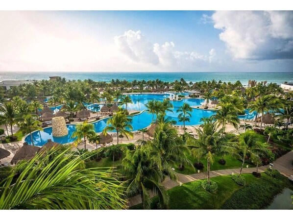 Grand Luxxe Residence Club offers luxury with diverse dining from casual snacks to first-class cuisine, plus room service. Enjoy multiple pools, beach access, and explore the jungle effortlessly with elevated pathways and convenient tram service.