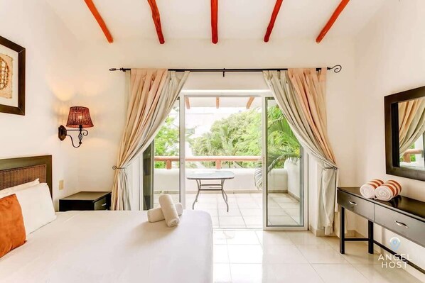 Soft tropical air moves through the patio as your day begins, while the gentle rustle of palms sets an easy rhythm around you. Mornings invite quiet coffee outdoors, and evenings settle into the calm of the terrace as warm light fades into the surrounding garden. Indoor comfort flows naturally into open-air living, creating a relaxed base close to Playa del Carmen’s vibrant energy.