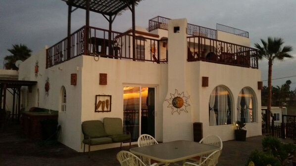 Relax on your private terrace overlooking the Pacific Ocean while bbqing your favorite meals. Join your family & friends by the fire pit under a starlit night. Sleep to the sound of the crashing waves. Just a few steps to the beach. The villa is nicely decorated with locally sourced art & furniture. Smart tv's in all the rooms. Large lawn area with wood-fired pizza oven, outdoor kitchen & bbq grill and event area for families & groups. Private Chef available for tasty meals or a Mexican Buffet. Cantina on site with bartender, cocktails & snacks. Easy parking for your vehicles in the gated compound with 24 hour security.