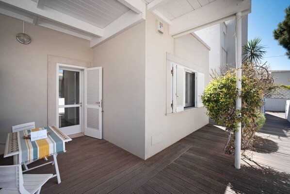 The apartment consists of a living room with dining table, sofa bed and kitchen with electric hob, fridge, electric oven, microwave oven, dishwasher and sink in steel, a double bedroom with walk-in closet and a bathroom with shower box and washing machine. There is also a small outdoor area with a table and chairs. The house is at few steps from the sea of Cala Paura.