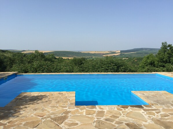 The giant terrace is bordered by a beautiful wall built of ancient Roman stones. On the terrace there is a newly constructed swimming pool of 10m x 6m.