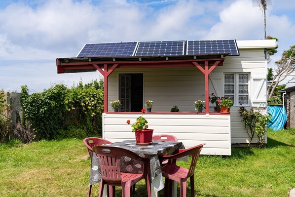 The Pointe Saint Gildas chalet, located in Préfailles, offers you a breathtaking view of the Atlantic Ocean. With an area of 30 m², it features a living room with a sofa bed for 2 people, a fully equipped kitchen, one bedroom, a bathroom, and separate toilets, accommodating up to 4 guests. You will also find a television and a baby cot at your disposal. This accommodation does not offer Wi-Fi or air conditioning. Electricity is supplied by solar panels, allowing you to charge laptops and phones, and the coffee maker is compatible with this system. However, the use of a hair dryer or straightener is not possible. The private outdoor area includes a garden, a covered terrace, and a barbecue. Four parking spaces are available on the property, and you may set up tents. A maximum of one pet is allowed. Smoking and parties are not permitted. The gas auxiliary heating requires special attention, especially in the presence of children.