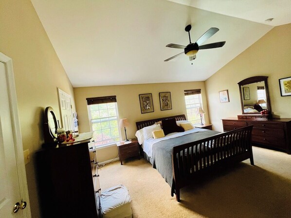 Summary: Forget your worries in this spacious and serene space. This Princeton Gem has free private parking, 4 mi from Princeton University. With free Wifi, this 4 bedroom home provides a flat-screen TVS with firesticks for streaming. Washer, dryer and fully equipped kitchen with a dishwasher and microwave. Heat and AC this home has a fireplace in the family room. The home has a private entrance with a double garage and 2 car driveway. Beautiful Master Bedroom with a claw tub for ultimate relaxation.