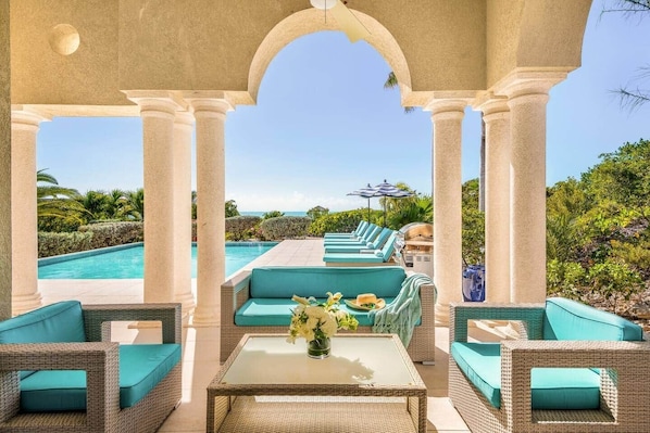 With unbeatable views of the crystal-clear ocean and sophisticated European-style furnishings, Villa Sublime truly lives up to its name. Located on the south coast of Providenciales near Silly Creek, the property has three bedrooms, with the option of a fourth, and plenty of space for up to six guests to spread out. Sunbathe around the pool or slip into the ocean via the villa’s unique grotto. Not only is Villa Sublime itself quite spacious, but its 1.5 acres of land afford stunning views of Silly Creek and sunsets over Turtle Rock. Start each day with breakfast at the covered outdoor dining area, then soak in the sunshine from the pool terrace or take the path down to the ocean for a swim. Inside, the villa has central air conditioning and other perks. Villa Sublime’s living spaces mix traditional Caribbean pieces with European touches for one-of-a-kind style. In the living room, white walls, slipcovered sofas and wicker armchairs feel cool and tropical, while a Persian-style rug, antique armoire, columns and wrought-iron accents add a sense of history. The dining room, which is open to the kitchen, has an elegant wrought-iron and glass table plus an ocean view, and the kitchen itself has fresh-feeling white cabinets and stone countertops. Each of the property’s three bedrooms has air conditioning, a ceiling fan, a television and a DVD player. There is one bedroom with a king bed and en-suite bathroom, one bedroom with a queen bedroom and en-suite bathroom and one bedroom with a queen bed and adjacent bathroom. Larger parties can use the den, which has two twin sleeper sofas, as a fourth bedroom. Swimming in the turquoise Turks and Caicos waters is at your doorstep at Villa Sublime, but the beach is just a short drive away, too. It’s also 15 minutes by car to downtown Providenciales and its shopping, restaurants and resorts, as well as the international airport. Copyright © 2014 Luxury Retreats. All rights reserved. BEDROOM & BATHROOM • Bedroom 1 - Primary: King size bed, En-suite bathroom with shower and tub, Air conditioning, Ceiling fan, Television, DVD player • Bedroom 2: Queen size bed, En-suite bathroom with shower, Air conditioning, Ceiling fan, Television, DVD player • Bedroom 3: Queen size bed, Adjacent bathroom with shower and tub, Air conditioning, Ceiling fan, Television, DVD player OUTDOOR FEATURES • Waterfront Gazebo STAFF & SERVICES Included: • Light mid-week cleaning • Gardener Extra Cost (advance notice may be required): • Air conditioning consumption over 100KW • Activities and excursions Every guest is a appointed a Personal Concierge, available 24/7 Our luxurious Caribbean villas on Turks and Caicos are far enough from spring breakers and cruise line towns, offering sophistication and relaxation amid opulent white sandy beaches. A dry, tropical climate with fairly consistent temperatures year round. Highs generally stay between 80°F and 88°F (27°C and 31°C) all year. A car hire is essential The usual hire companies are available. we recommend Grace Bay Car Rentals