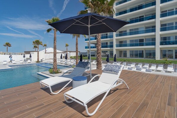 In the heart of Playa Encanto Beach, Encantame Towers offers an exceptional beachfront retreat. This three-bedroom condominium features a spacious patio with U-shaped sofa and chaise lounges, perfect for relaxing with family. Enjoy resort amenities like the Lazy River, water slide, and Swim-up Bar or unwind at one of the large main pools or Jacuzzis.