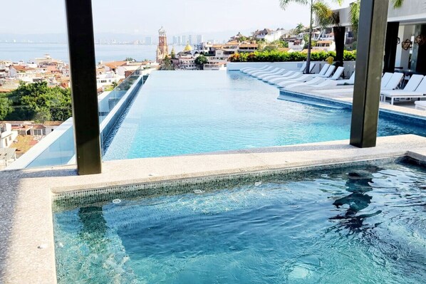 Central Puerto Vallarta condo with pool, ocean views & fast WiFI - walk to beach