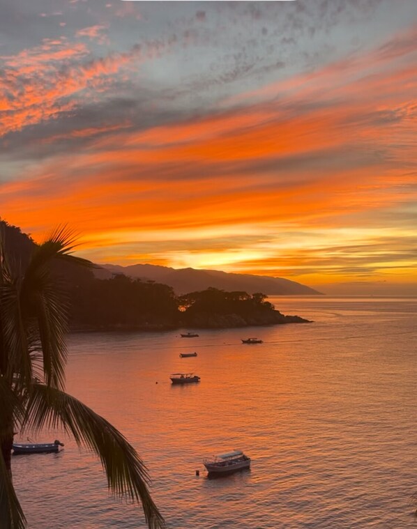 What I love most about this property is the setting. From the balcony and throughout the residence, you are surrounded by breathtaking natural beauty in every direction—lush jungle-covered mountains rising dramatically in front of the building, the sound of waves gently lapping onto the sandy beach below, fishing and tour boats softly bobbing in the bay, and spectacular sunsets that seem almost too beautiful to be real. There is something uniquely cinematic about Mismaloya; at times it feels less like a vacation destination and more like a scene from a film. Despite its beauty, it still feels like a hidden corner of Puerto Vallarta known primarily to those who have discovered it and return year after year for its rare combination of scenery, tranquility, and authentic charm.