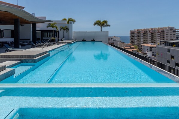 Immerse yourself in the vibrant spirit of Puerto Vallarta at Madero 320 Unit 301, where tropical design meets modern sophistication. Unwind on your private outdoor terrace with ocean breezes or enjoy a relaxing moment by the pool and warm Jacuzzi on the rooftop Terraza.