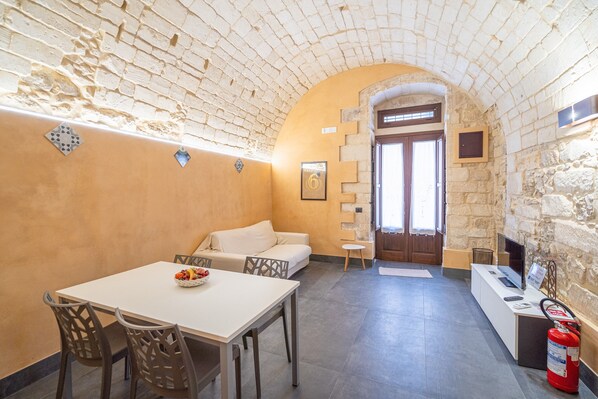 This completely renovated holiday apartment is named after the Arabic word 'damus', referring to a traditional stone structure with round vaults. It is located just 50 m from the Cathedral of San Giovanni and other historic buildings, 1.5 km from Ragusa Ibla, 13 km from Modica, 16 km from Donnafugata Castle, 20 km from Scicli, 24 km from Marina di Ragusa, and 85 km from Catania. Designed with every comfort in mind, the apartment offers a dream stay in a setting rich with history and charm. Public transport links are within walking distance.