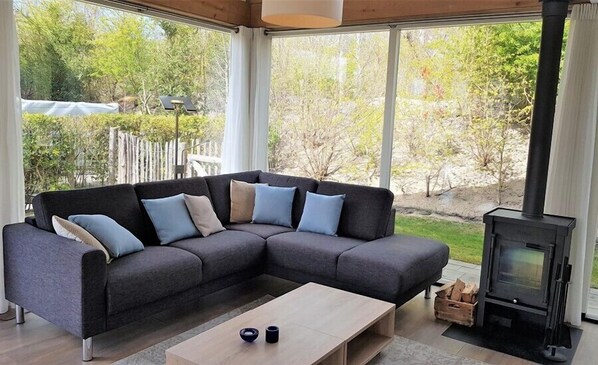 This modern, bright beach house is decorated with quality furniture. The living has an adjacent dining area and open kitchen, which allow interaction. The colder days are also comfortable due to the floor heating and wood burner. The ground floor is provided with a bedroom, bathroom en suite and separate toilet. The first floor has two bedrooms, another bathroom with shower and separate toilet. Your stay in this house will be even more comfortable because of the upstairs bedrooms have skylights that automatically regulate the aeration. As a result, it is significantly cooler in the bedrooms in the summer.