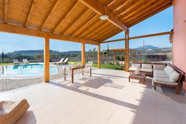 Beautifully crafted Sephora Villa is designed to calm all senses and offer you a complete relaxation. It is set at the east coastline of Faliraki, and has a dreamy private swimming pool. The nearest beach is found within a 7-minute driving distance. Sephora villa conveniently accommodates up to 8 guests. The 4-bedroom villa provides 3 double-bedded rooms and 1 room with 2 single beds. Two of the bedrooms with the double beds offers an ensuite bathroom witch one has a bathtub & the other one has shower for your ultimate relaxation. Also, there is a shared bathroom with a bathtub as well as a wc. Guests will find a fully equipped kitchen, along with a dining area and a cozy living room. The villa owns a smart TV with satellite channels and free Wi-Fi access. Outdoors, guests will find their private swimming pool where they can rest on their sunbeds and benefit from the summer sun of Rhodes. Don’t miss an opportunity to enjoy a fresh meal made at the BBQ facilities. Also, there’s a table tennis for fun moments with your loved ones! Heated pool upon request 20 euros/per night.