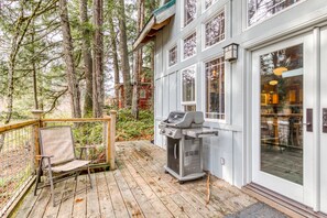 Title: Riverfront home close to skiing & fishing with beach access & huge VHS library Reviews, Deals & Photos 2026 - Expedia.co.uk [See all properties](http://www.expedia.co.uk/Hotel-Search?regionId=&selected=21708686&adults=2&children=&sort=RECOMMENDED&useRewards=false&semdtl=&userIntent=&vip=false) Entire cabin # Riverfront home close to skiing & fishing with beach access & huge VHS library Riverside cabin with kitchen and patio ## Photo gallery for Riverfront home close to skiing & fishing with beach access & huge VHS library ![Dining - Riverfront home close to skiing & fishing with beach access & huge VHS library (Rhododendron)](https://images.trvl-media.com/lodging/22000000/21710000/21708700/21708686/95b12adb.jpg?impolicy=resizecrop&rw=598&ra=fit) ![Exterior - Riverfront home close to skiing & fishing with beach access & huge VHS library (Rhododendron)](https://images.trvl-media.com/lodging/22000000/21710000/21708700/21708686/99d14c2b.jpg?impolicy=resizecrop&rw=297&ra=fit) ![TV, fireplace, DVD player, books - Riverfront home close to skiing & fishing with beach access & huge VHS library (Rhododendron)](https://images.trvl-media.com/lodging/22000000/21710000/21708700/21708686/6b35e840.jpg?impolicy=resizecrop&rw=297&ra=fit) ![TV, fireplace, DVD player, books - Riverfront home close to skiing & fishing with beach access & huge VHS library (Rhododendron)](https://images.trvl-media.com/lodging/22000000/21710000/21708700/21708686/bbfa1689.jpg?impolicy=resizecrop&rw=297&ra=fit) ![Terrace/patio - Riverfront home close to skiing & fishing with beach access & huge VHS library (Rhododendron)](https://images.trvl-media.com/lodging/22000000/21710000/21708700/21708686/2de2e4b7.jpg?impolicy=resizecrop&rw=297&ra=fit) - Overview - Location - Amenities - Policies Escape to Alder Wood, a riverfront retreat in Rhododendron with a private deck and outdoor fireplace. Unwind amidst the forest and Sandy River views through the wall of windows or enjoy family breakfasts at the farmhouse dining table. With thoughtful details like two-story ceilings, an open kitchen, WiFi, washer/dryer and TV/DVD player for cozy nights in. ## Reviews 9.0 Wonderful ### Entire cabin 1 bedroom1 bathroomSleeps 61050 sq ft ## Popular amenities - Kitchen - Washing machine - Dryer - Outdoor space - Parking available - Barbecue grill ## Add dates for prices Check-in Check-out Travellers ## About this property ### Entire place You'll have the entire cabin to yourself and will only share it with other guests in your party. ### Riverfront home close to skiing & fishing with beach access & huge VHS library Alder Wood Our calendar is updated in real-time & our nightly rates are accurately displayed. Simply enter your desired dates and click 'Book Now!' Spend your days skiing, hiking, and fishing when you book a getaway to this riverfront home with a private deck, an outdoor fireplace, and a gorgeous location on the banks of the Sandy River. Wonderfully situated in a woodland neighborhood in Rhododendron, this rustic and elegant two-level home is less than six miles from the Resort at the Mountain's golf courses, 15 miles from Mt. Hood Skibowl, 21 miles from the Timberline Lodge and Ski Area, and 26 miles from Mt. Hood Meadows Ski Resort. Once featured in the pages of Better Homes and Gardens, this warm and lofty home makes a comfortable escape for small families and groups of friends looking to enjoy the beauty of Mt. Hood. With two-story ceilings and a stunning wall of windows that frame the forest and the Sandy River, the living space is full of thoughtful and homey details. Curl up with a novel on the sofa, or enjoy an afternoon game of Scrabble in the warmth of the wood-burning fireplace. And although the tempting dishes at the Rendezvous Grill are only five miles away, you'll cook comfortably in the open and well-equipped full kitchen. Grind your own Mt. Hood Roasters coffee beans each morning and enjoy family breakfasts at the farmhouse dining table. As the sun sets each evening, pour yourself a glass of wine and soak in the sweeping river views on the back deck. Feeling a bit cold? You'll find an outdoor fireplace for those chilly mountain nights. To make your stay all the more relaxing and convenient, Alder Wood is equipped with a private washer/dryer. This home also has a TV and DVD player. Upstairs, you'll find two loft-style adjoining bedrooms with one queen bed and one twin bed, although a door does not separate them. WiFi is also provided. Escape to the serene beauty of this natural wonderland - reserve your Mt. Hood vacation rental today! THINGS TO KNOW PERMIT ID#80432 Parking notes: There is free parking available for 2 vehicles. Please note: this home resides in a noise-sensitive area and the owners participate in our Good Neighbor protection program. Our smart home technology will alert our team if excessive decibel or occupancy levels are detected, allowing us to reach out directly with a reminder of maximum occupancy and quiet hours. This technology is privacy compliant, and only monitors the presence of decibels and devices-not any personal conversation or information. Thank you for supporting our efforts to be good neighbors! Damage waiver: The total cost of your reservation for this Property includes a nightly damage waiver fee, plus tax if applicable (the “Damage Waiver”). (A discount may be applied for stays of 28 nights or longer, if permitted.) The Damage Waiver covers you for up to $3,000 of accidental damage to the Property or its contents (such as furniture, fixtures, and appliances) as long as you report the incident to the host prior to checking out. The Damage Waiver fee eliminates the need for a traditional security deposit. More information can be downloaded from the "Rental Agreement" on the checkout page. Due to local laws or HOA requirements, guests must be at least 21 years of age to book. Guests under 21 must be accompanied by a parent or legal guardian for the duration of the reservation. ## Pro