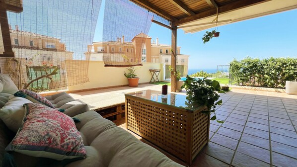 Large Terrace with Sea Views and Pool provides a garden and more. Guests can connect to free in-room WiFi.
