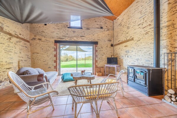 The property also features a dedicated leisure barn with table football, ping-pong, board games, a lounge/TV area, and a wood stove, opening directly onto the terrace and garden. Enjoy sun loungers, a fire pit, and open views of the surrounding countryside.