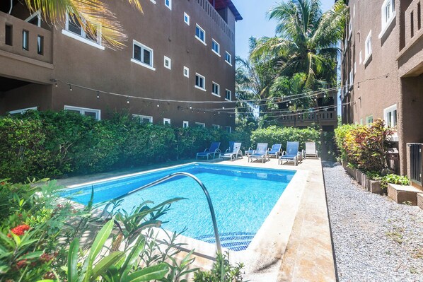 Does Relax in Egret 2 at Mangrove Dock, a spacious 3-bedroom retreat in Roatan's West End. have a pool?