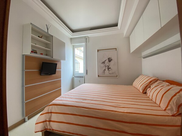 The apartment has a small private balcony, ideal for enjoying a quiet moment during your stay in Rome.