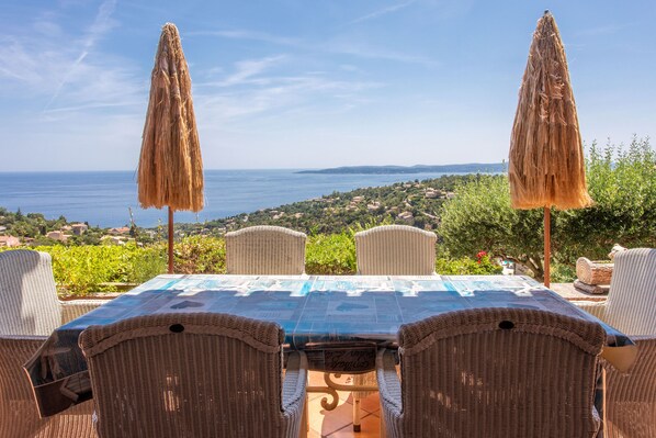 Boasting a beautiful view of the sea, the holiday home Villa Bellevue is located in Roquebrune-sur-Argens. The 3-storey property consists of a living room, a well-equipped kitchen, 3 bedrooms and 2 bathrooms and can therefore accommodate 6 people. Additional amenities include high-speed Wi-Fi (suitable for video calls) with a dedicated workspace for home office, air conditioning in the living room, a TV, a fan, a washing machine as well as a dryer. A high chair is also available.