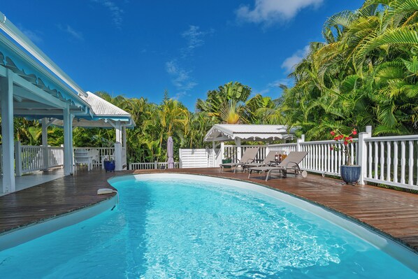 Rated 4-star furnished accommodation, the villa offers a comfortable and stylish setting for holidays in Guadeloupe with family or friends.