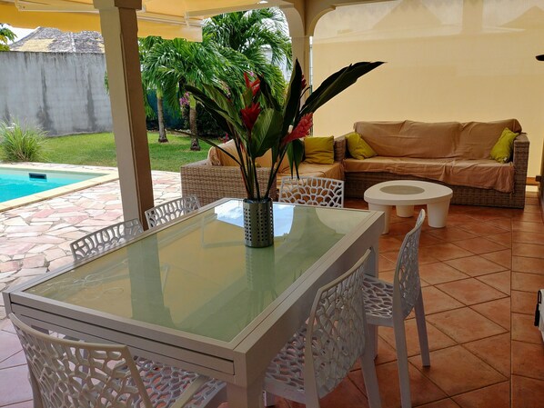 Situated in Saint-François, this villa is within 2 miles (3 km) of Plage de l'Anse des Rochers, Plage du Manganao and Raisins Clairs Beach. Port of St. Francois is 3 mi (4.8 km) away.