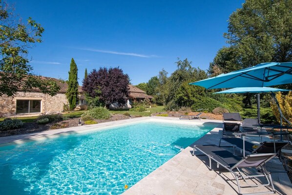 The vacation home is part of a property with three vacation apartments where guests share the pool, large garden, and common area. You can explore the countryside of southwest France, discovering ancient towns and medieval castles, or simply unwind in the magnificent garden setting.