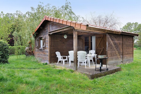 The cosy 32 m² chalet accommodates up to 6 guests. It features a living room, 2 bedrooms, bathroom, a small kitchen, terrace with barbecue, and garden furniture—ideal for relaxing together.