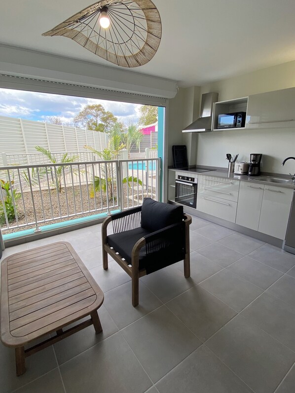 Résidence neuve, moderne et bien décorée. De l'espace, tout est neuf, piscine très agréable, quartier calme et présence supérette à 100m, belle plage à 300m environ avec vue sur le diamant et la femme couchée. Point central idéal pour visiter tout le sud. Service client entrée sortie, communication très agréable et sympathique. Bon équipement cuisine et général. Très bon rapport qualité prix. Je recommande et je reviendrai.