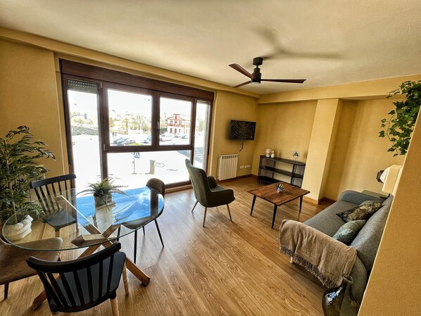 Precioso apartamento de 2 dormitorios con todas las comodidades. Situado en una zona tranquila de aparcamiento facil y gratuito, frente al Puente Romano y las Catedrales, cuenta con 1 dormitorio con cama matrimonio, 1 dormitorio con 2 camas individuales,Salon, baño completo, cocina y pequeño patio.