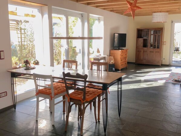 Eine gemütliche Wohnung inmitten eines wunderschönen, üppigen Gartens.
