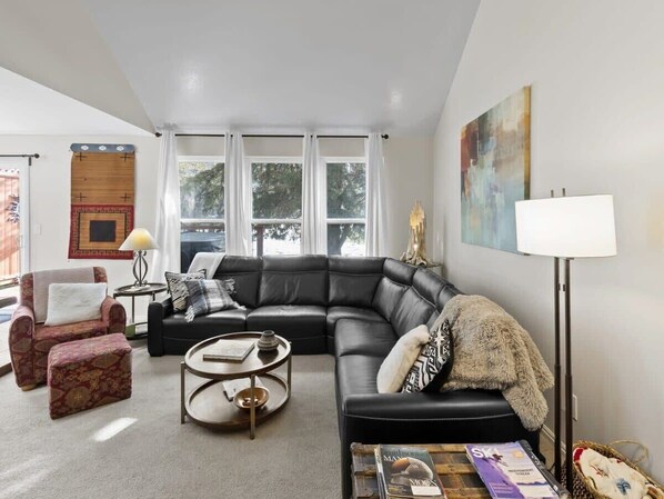 After a fun day of exploration, stretch out in the family room with a large sectional sofa and comfortable armchair seating. Enjoy the company of your loved ones while watching your favorite movie or show on the flat-screen TV.