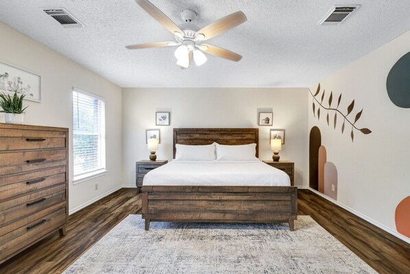 This home has 5 large bedrooms and 7 total beds. Rest easy on our top-rated memory foam mattresses! Enjoy a home-cooked meal in the well-stocked kitchen. Rainy day? Play some family games in the comfy living room or watch a movie on the smart TV.