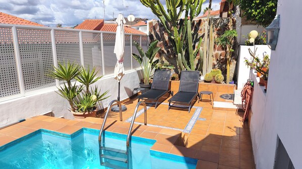 In the tranquil Maspalomas area, this villa offers a serene retreat with a private pool and separate entrance. Unwind in the equipped kitchen, catch up on work at the table, or relax in front of the TV with Netflix and Prime. Enjoy WiFi access throughout your stay.