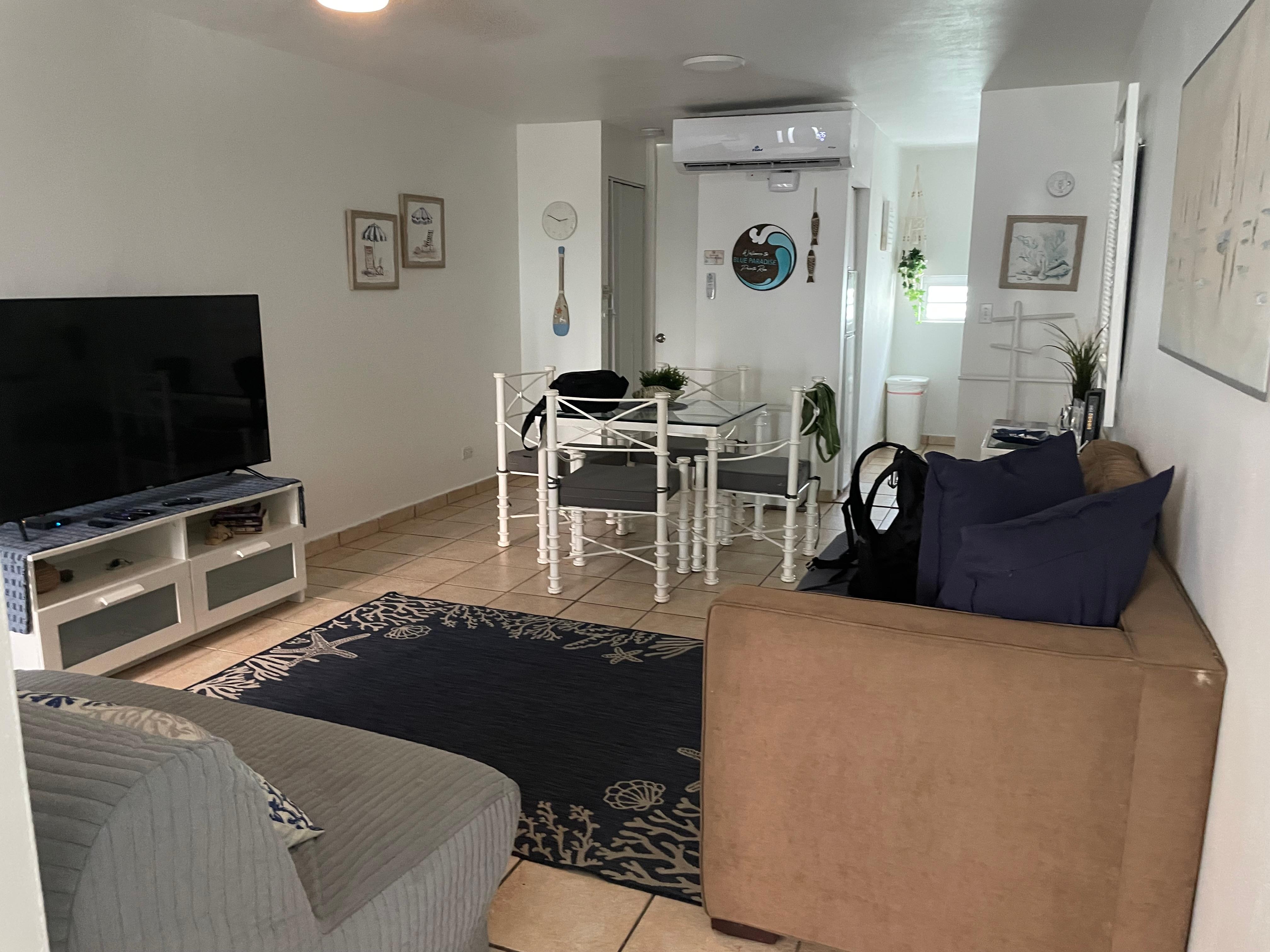 Clean room, nice pool, decent kitchen, great proximity to beach (swimming is not allowed), great location for pick ups for tours. Decent restaurants nearby. Walkable into Old San Juan (long walk).