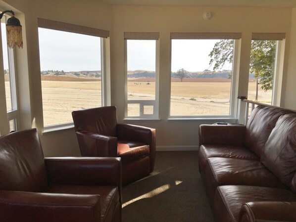 Ranch home located on Star Farms, a family operated hay and vineyard operation, located on the Estrella Wine Trail just a few minutes from Paso Robles. Sip wine from the Tower Room as the sun sets or BBQ onsite with a fully appointed kitchen. Stretch your legs with 4 miles of walking trails (contained within the property) along the Estrella River which runs the length of the property. Take a soak in the hot tub under the stars. Private lawn, patios, outdoor seating and dining. Three bedrooms, each with Cal King beds, ceiling fans over the beds and two full baths. Plenty of parking, including a two car garage. WiFi and Dish TV on site. Central heating and air along with a cozy wood burning fireplace. Just far enough out for a country feel, but not in the middle of nowhere. This is also fantastic bicycle country. Wineries are nearby awaiting to be discovered along with the many fine restaurants of Paso Robles. Owners live on the farm, in a separate house, and understand the concept of privacy. Horses and a burro reside on the farm along with a friendly small Rat Terrier that makes the rounds. Four barn cats call the 300 ton hay barn home. Recently renovated, you will feel instantly at home and completely at ease the moment you open the door. Guests have access to the Tropical Pond on the property November 1st through May 1st. Cornhole setup on site.