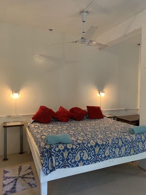 Unwind in this converted workshop turned luxurious retreat with its own private entrance. Enjoy the serene ambiance of King size bed, cooling AC, and an unusual outdoor shower amidst lots of trees and birds. Its a 3 minute walk to the beach.