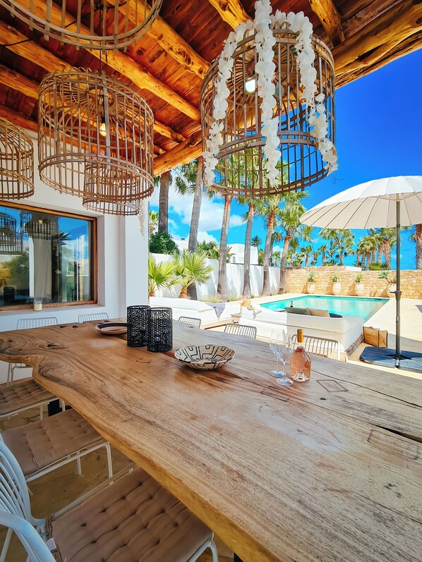 Outdoor dining - Our Favorite: Beautiful Boho Dream Villa / Ibiza Finca Style with Sea Views (Ibiza)