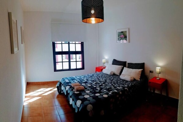 Very nice decorated 3 bedroom flat in Santa Cruz. One main room with a double bed, one with one twin bed and one with a 110cm wide bed. It has two bathrooms one with shower and the other with bath. It has a very large living-dining room. The kitchen is fully equipped with all utensils and appliances. Located in the city centre, near the "Plaza Weyler".