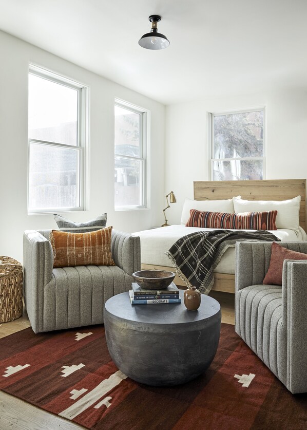 The Haddie offers an upscale space where mid-century modern design combines with local artistic touches. Guests can watch the smart TV, relax on the outdoor patio overlooking garden views, and stay connected with in-room WiFi throughout their stay.