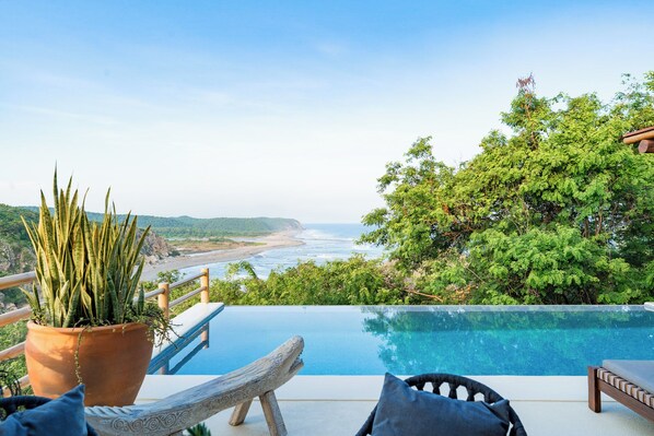 Positioned just steps from the Playa Bocana gate, Soleri offers fast and easy beach access, allowing you to wander between your private haven and the surf within minutes. On the lower level, a lush tropical private outdoor lounge wraps you in greenery—an intimate space perfect for morning coffee, afternoon reading, or an evening mezcal under a canopy of trees.