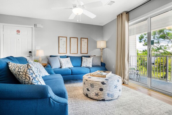 Only 200 yards from the beach, Beachside Villas 732- Southbound Serenity is a fabulous condo with access to community pools, lighted tennis courts, shuffleboard, a grilling area and more! This lovely 3BR/2.5BA condo features a bright white kitchen with gorgeous granite countertops and stainless-steel appliances, new flooring throughout, and a large balcony to chase the sunset! With a king bed in the master bedroom, a king in the guest bedroom, and two queen beds in the additional guest bedroom, this condo sleeps up to 8 guests comfortably. Relax on the top floor of this low rise complex overlooking the grassy knoll or soak up some sun on the community lakeside deck! Come make long lasting memories at Beachside Villas 732- Southbound Serenity on 30A!