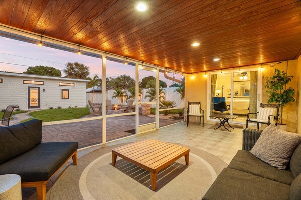 Terrace/patio - Honey Glow Bungalow  | Screened-In Porch, Patio + Yard Games! (Sarasota)