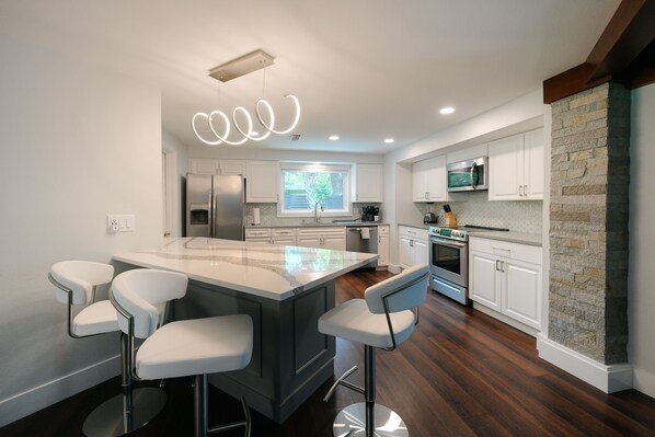 Enjoy our Sarasota vacation home 'Shanti Nivas ( Peaceful Abode in Sanskrit). We thoughtfully furnished our home with our guests in mind- thinking about what we would want to experience during a visit to Sarasota. Our home is adorned with contemporary furniture, kitchen utensils and other accessories to make your stay as comfortable and memorable as possible.