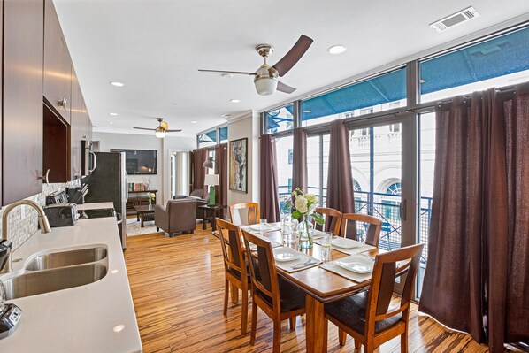 You’ll enjoy a secured entry during your stay at this luxury condo in the heart of the Hostess City of the South. Located one block south of Broughton Street, this newly renovated property has three bedrooms and two full baths, and can comfortably accommodate up to five Lucky guests.
